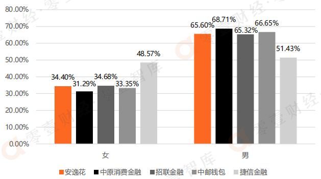 图 11:5家消费金融APP用户画像对比——性别分布搜索占比