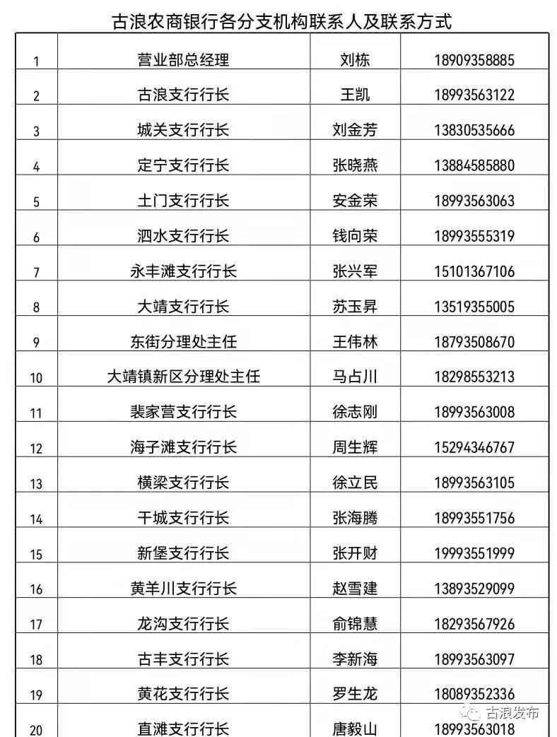 古浪支行成立于2010年12月1日,现有员工13人,下辖1个经营性支行,位于步行街33号,截止2022年1月末,各项存款余额2.53亿元,各项贷款余额4.1亿元,余额存贷比75%。