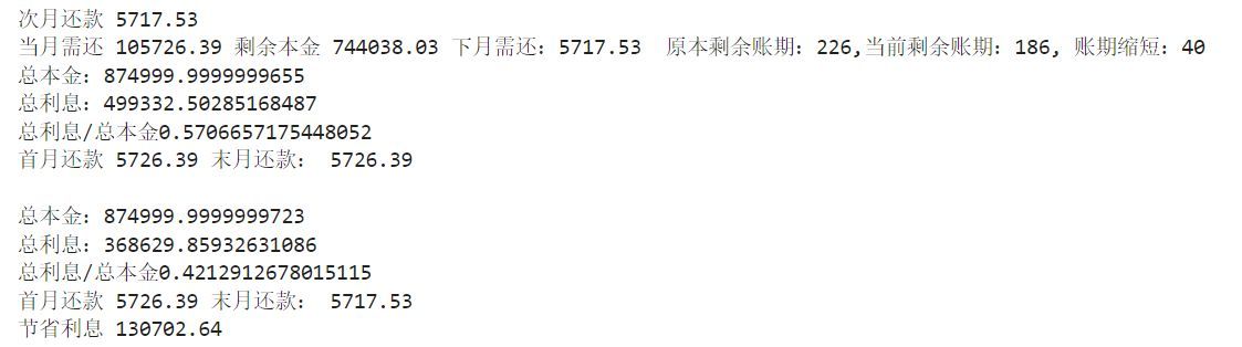 年限不变,月供减少年限缩短,月供不变现在分情况讨论,并给出计算函数。