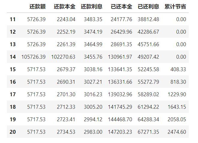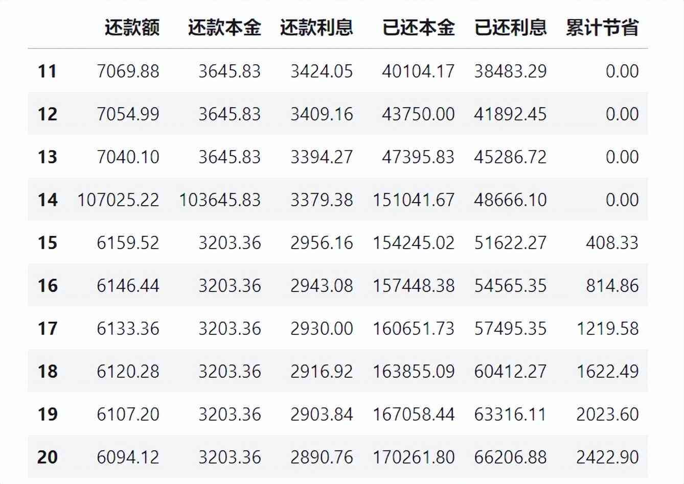 可以很方便地看出节省利息在每个月还款额中的比重。