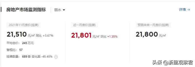 我们从中国房价行情网得知,截至11月,浙江杭州的房屋均价已经达到了40515元/平米,近一个月的均价同比增长5.15%,丽水的房屋均价达到21510元/平米,近一个月的挂牌价同比增长1.65%。