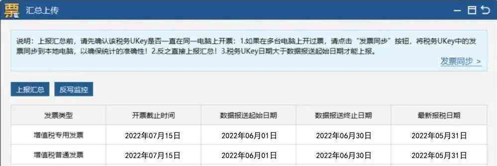 第三步:登录软件 ,点击【数据管理】--【汇总上传】--【反写监控】开票截止时间变成下个月即为清卡成功。