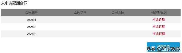 已做本金延期申请的用户,点击“本金延期”菜单,跳转展示已申请延期合同列表。