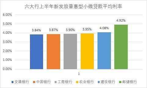 从贷款平均利率来看,交通银行上半年新发放普惠型小微企业贷款平均利率仅为3.84%,是六大行中最低的;其它五大行的贷款平均利率从低到高排序依次为中国银行3.87%、工商银行3.90%、农业银行3.95%、建设银行4.08%、邮储银行4.92%。值得注意的是,邮储银行的普惠小微贷款平均利率较上年全年下降27个BP,为六大行中幅度最大,但仍显著高于同业。