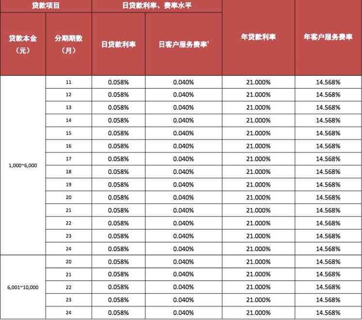 但除此之外,还有日客户服务费率0.040%,即年客户服务费率达到14.568%。且若发生逾期,从逾期之日起对逾期未偿付的金额按日利率上浮50%计收罚息。