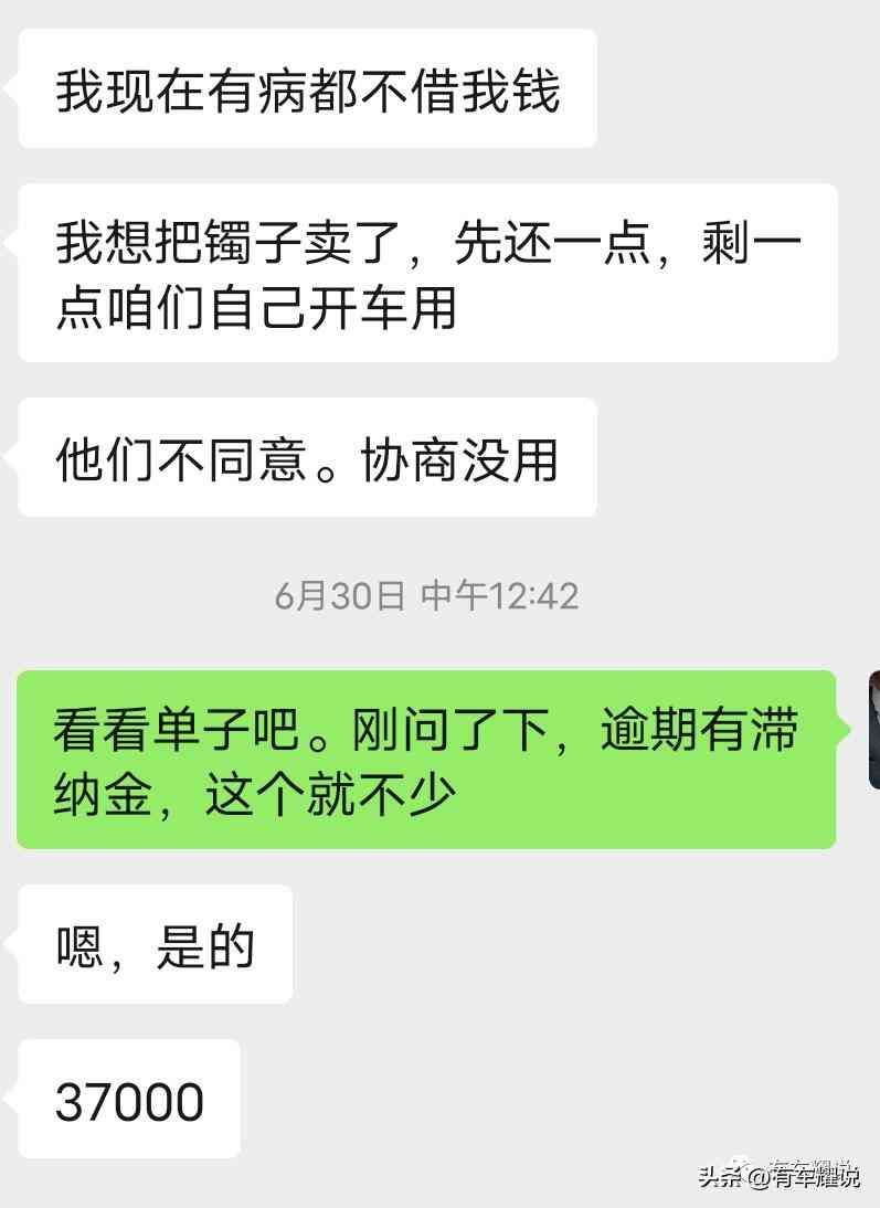 到了中午,前后联系了十几次,对方终于联系上了。说话强硬且不太好听,八成把我们当成老赖了,家里变故生病用钱在他眼里不过是个“借口”,想要提车交钱就行。没有给明确的账单,通过微语音交代了需要缴纳的费用,合计:三万七千元!