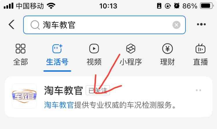 打开手机支付宝,搜索并关注【淘车教官】生活号,找到【车辆状态查询】的选项,选择【抵押状态查询】;然后选择【车辆类型】并输入【车牌号】,最后点击付款查询。