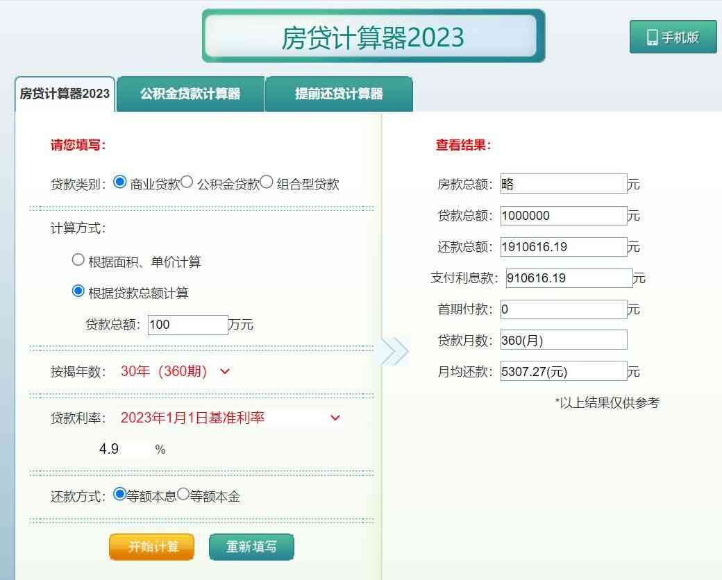 1、网上随便找一个房贷计算器