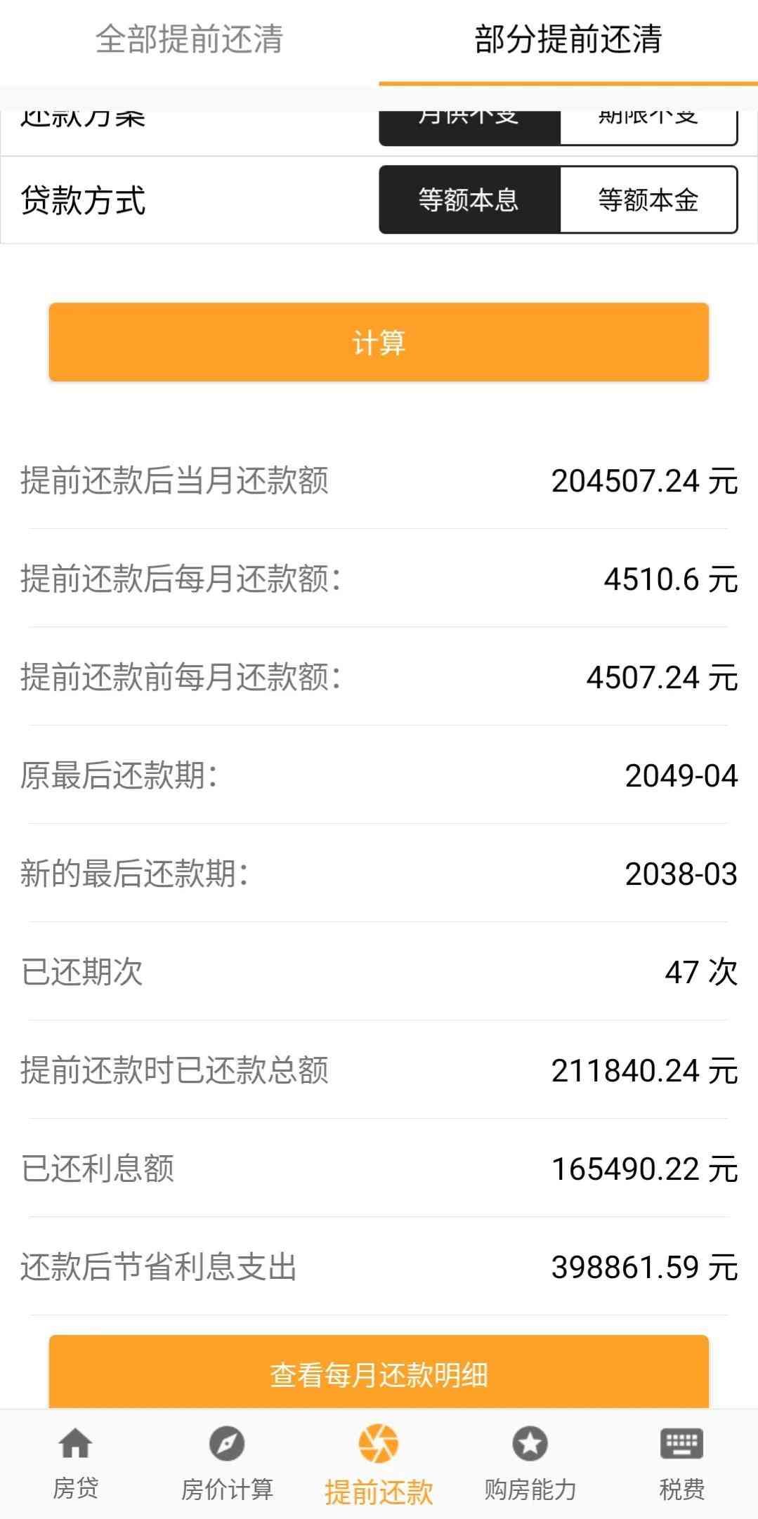 提前还款房贷计算器缩短年限