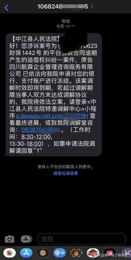 另外就是,如果你收到1068开头的调解短信,可以考虑冷处理。
