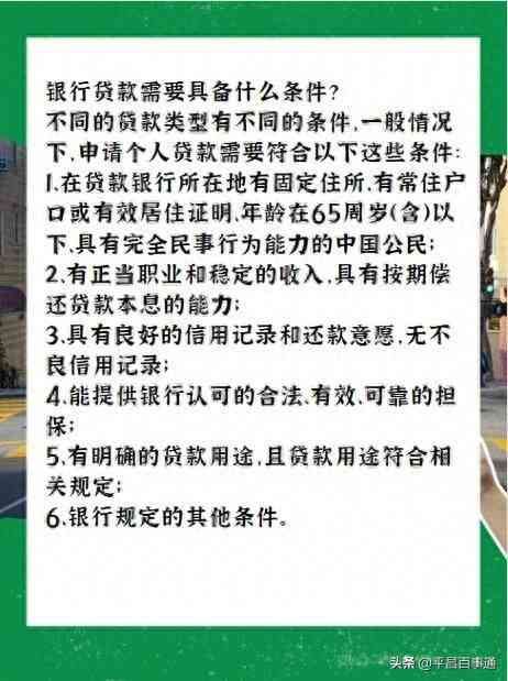 申请银行贷款并非易事,了解贷款条件是成功的关键。借款人需确保自身满足基本条件,并准备好相关材料。通过本文的解析,相信您已经对个人去银行贷款的条件有了更深入的了解。祝您申请贷款顺利!
