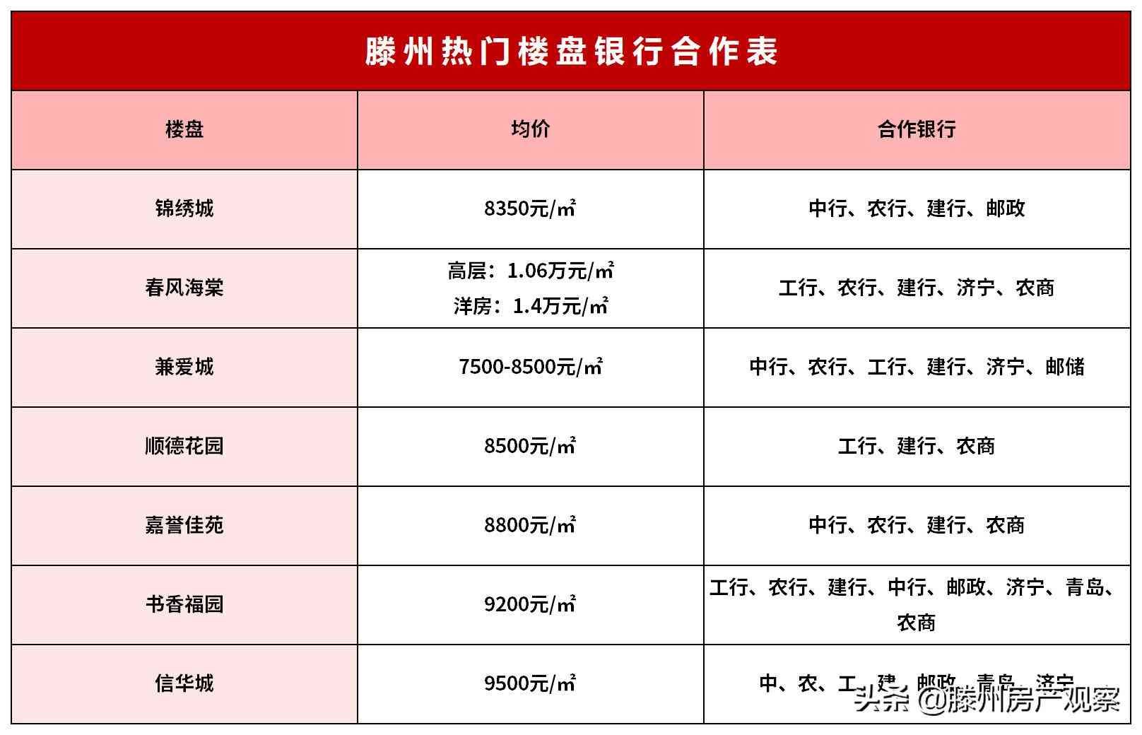 为此晴天咨询了滕州的中囯银行、工商银行、建设银行、邮储银行、农商银行、农业银行、青岛银行、济宁银行等8家银行,让我们来看一看各银行具体是什么政策,以及哪家银行对购房者更友好。