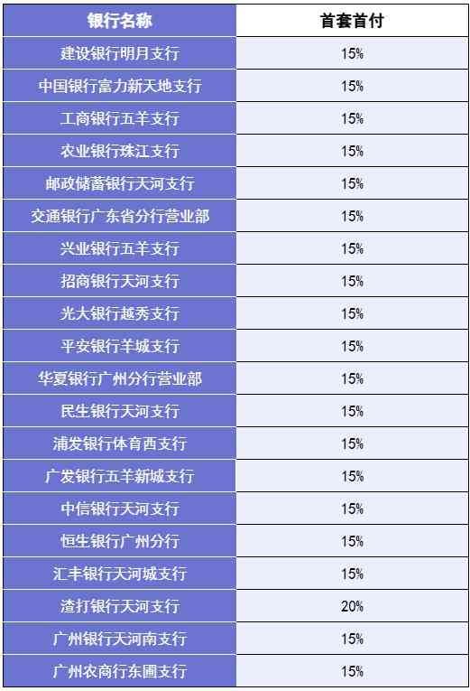 以首套房贷为例,在咨询的20家银行网点中,渣打银行天河支行客户经理明确表示,该行要求首付款比例最低不低于20%。对此客户经理解释,尽管新政允许最低至15%,但银行可以自行根据风险控制调节。