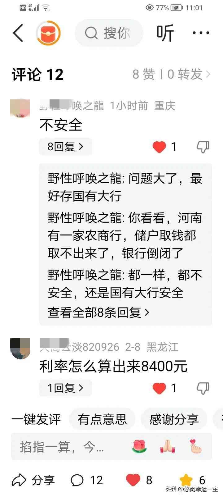 这位友友在看我29号那天写的文章,我在农商行存款10万是2.8的利率。