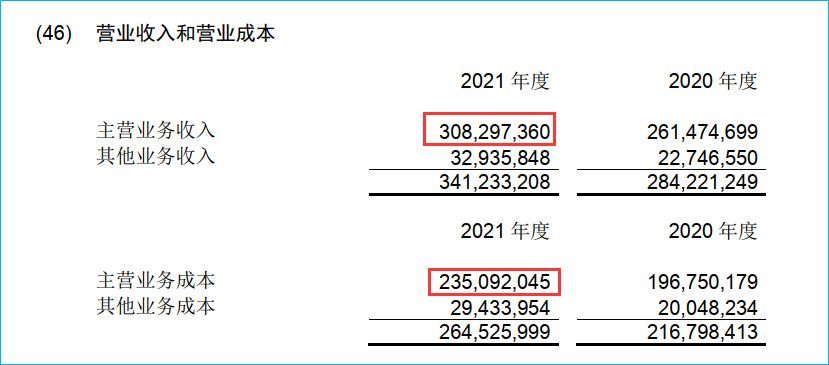 2021年美的集团公布的年度报告,我们可以看到,其披露的主营业务收入:308297360千元(约3082.97亿);营业成本为235092045千元(约2350.92亿)。