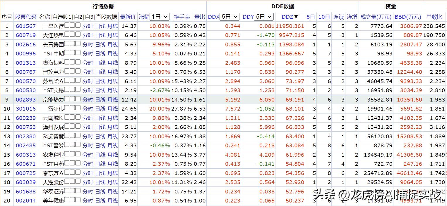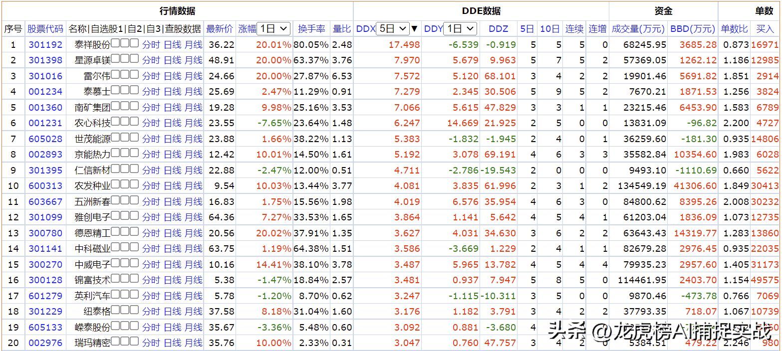 下图为近5日DDY指标排行榜: