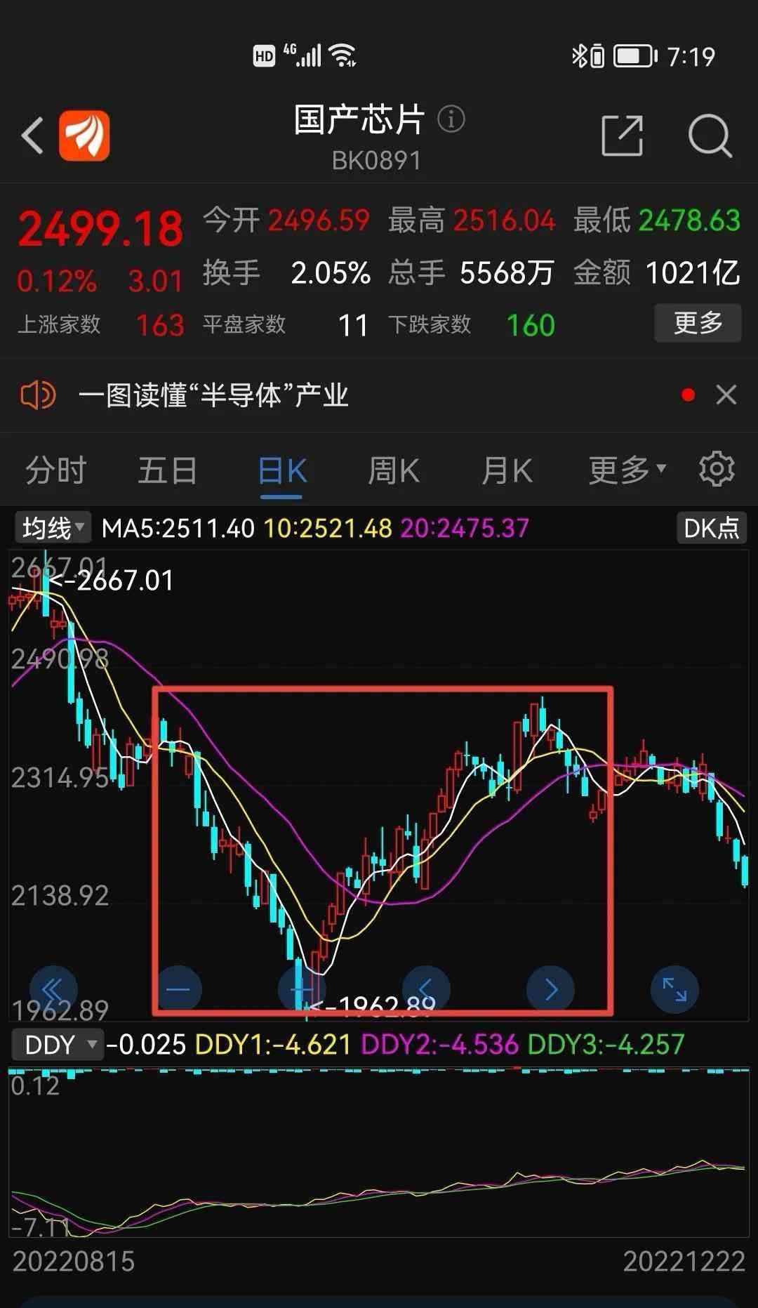 如上图所示,国产芯片板块,看红框里的部分,即使价格在下跌,DDY曲线也是向上的,充分说明资金在关注这个板块,整体 板块蓄势待发。
