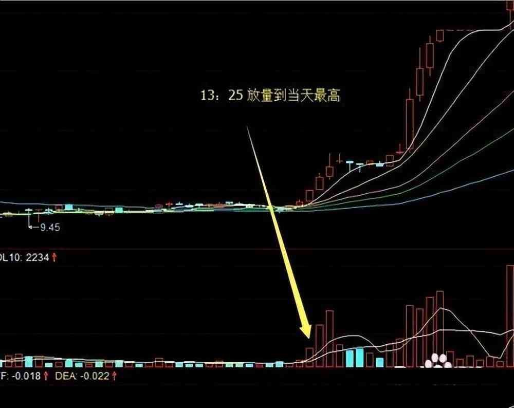 2、13:10分后,个股5分钟成交量放量到当天最高位置