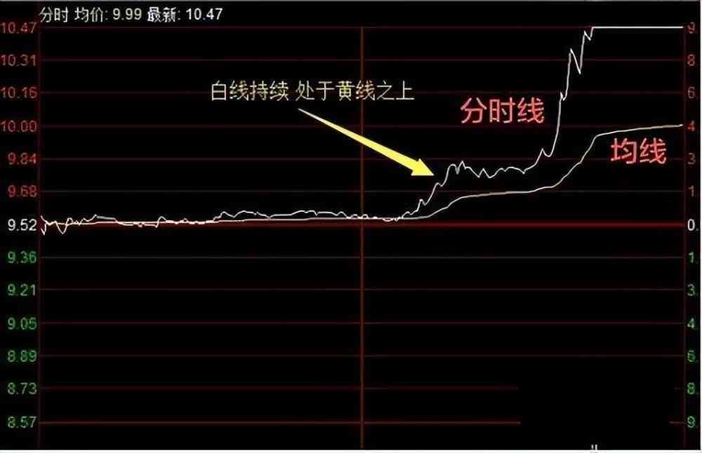 3、个股启动的时候分时线和均线一起启动,下方快速放出大量,可以果断买入!