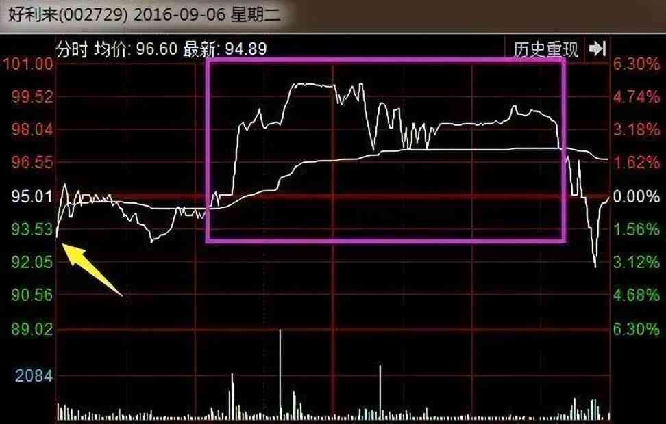 2、当个股开盘之后长时间围绕均线不动,上下震荡1个点之内,震荡时间越长,启动拉出涨停的概率越大!