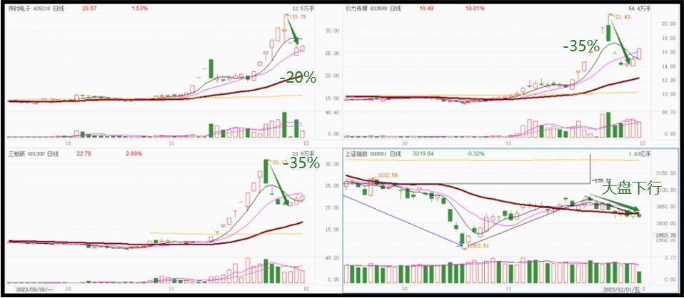 在11月下旬的8个交易日中,从5支股票中海选出3支准龙头,都没能晋级成功,如果乱操作,那么后果不堪设想。