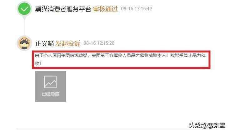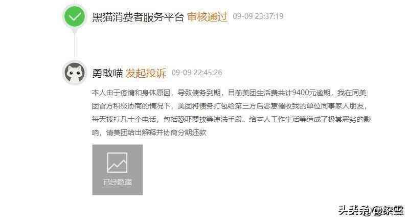 无独有偶,同一天,另一位投诉人声称,自己因为疫情和身体原因,导致在“美团借钱”的贷款逾期,欠款约94元,逾期后,他也积极联系了“美团官方客服”,想要协商还款方案,可万万没想到,“美团借钱”竟然把债务外包给了所谓的第三方催收机构,这些催收人员不仅拒绝提供身份信息证明,还拿不出“美团借钱”委托他们催收的证据简直就是一群来路不明的“黑衣人”!