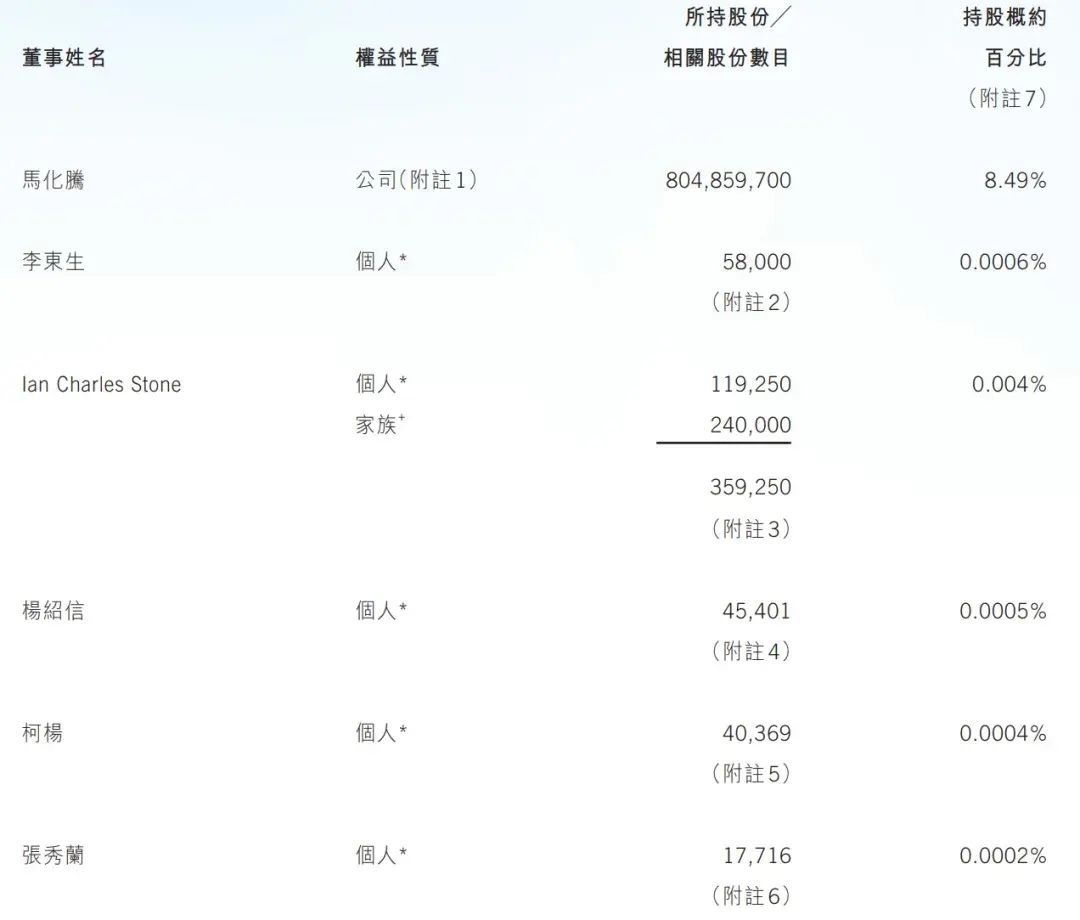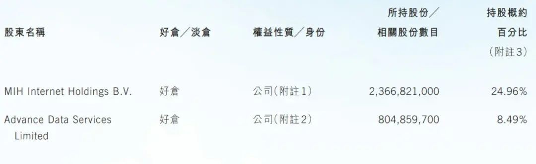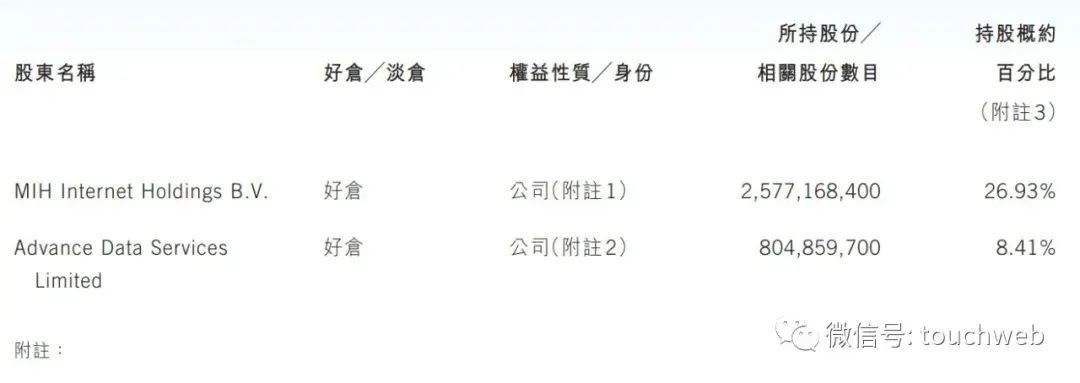 截至2022年12月31日,MIH持股26.93%,马化腾持股比例为8.41%。
