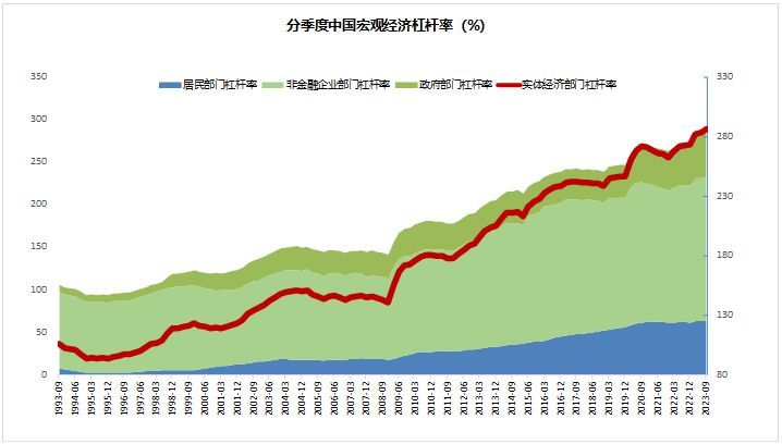 高投资的经济增长模式的结果就是宏观杠杆率的不断提升。根据国家资产负债表研究中心的数据,2023年3季度中国宏观经济的杠杆率已经超过280%,这个比例在国际上也属于前列了。这个数字蕴含的意义是,下一步的经济增长继续加杠杆的空间已经不大了。