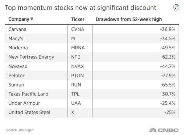 Peloton也入选到了摩根大通的高贝塔值股票名单中。由于其第一财季营收增长令人失望,该股近期遭到了抛售。此外,公司还下调了对全年的预期,原因是市场对其运动器材的需求疲软以及供应链面临的挑战。