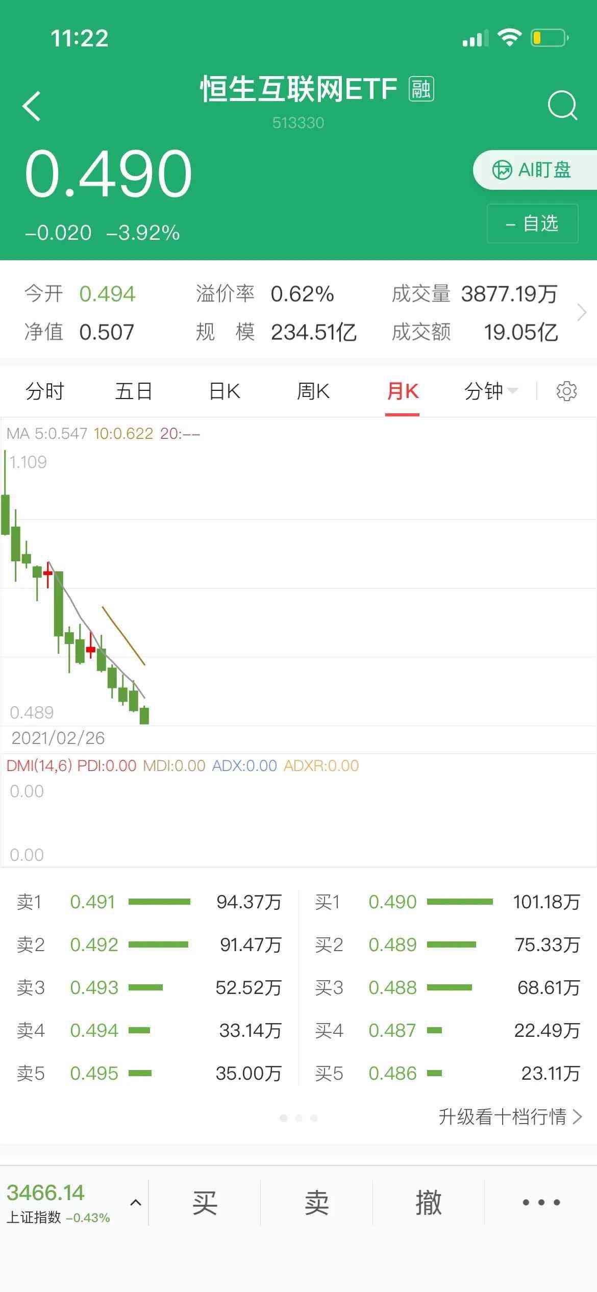 比如目前在物色的这个恒生(仅供参考,香港疫情加上外围局势不明朗,它的下跌风险仍然很大,可以选择自己了解的行业做)他已经腰斩,今天的波动范围在0.489-0.492;我早上挂单买0.49,卖出0.492,虽然没多少但风险小,稍微可以降低成本