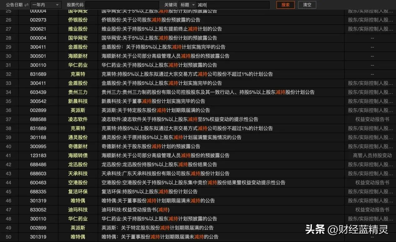 减持的企业还有很多,今天整理了50家,我就不一一介绍,具体名单如下,减持的公司尽量远离规避。