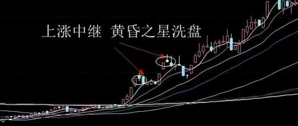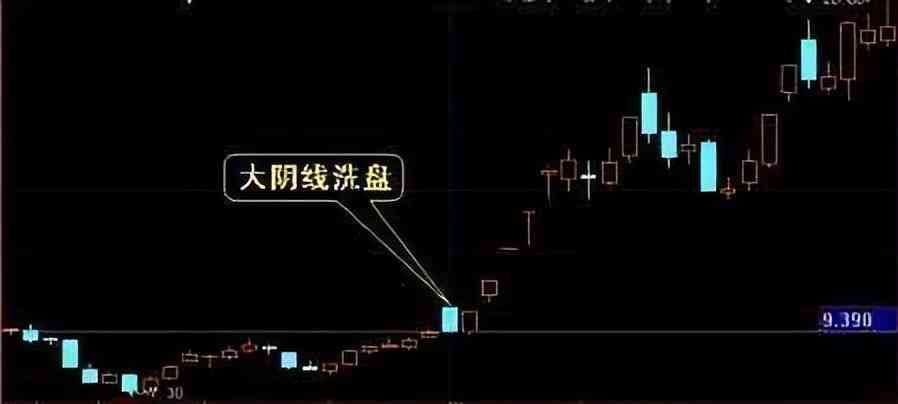 如图,在股价缓慢推升或震荡走高后,由于大盘原因或者主力洗盘而出现的几乎没有下影线的大阴线,形态极其恶劣,但是伴随着第二日,股价会快速拉升或者直接高开,并不给散入介入的机会。这种形态的洗盘一般说明主力或者主力所持筹码不多,有急于快速拉高股价的心理,从而不会进行更深入的洗盘行为。这种形态也多与常见的星线配合出现。