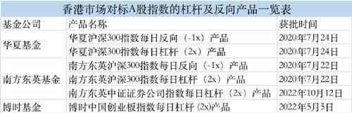 2016年9月,杠杠及反向产品首次出现在香港市场中。最先登陆港交所的杠杆及反向产品为华夏基金旗下的“华夏纳斯达克1指数每日反向(-1x)产品”和“华夏纳斯达克1指数每日杠杆(2x)产品”。