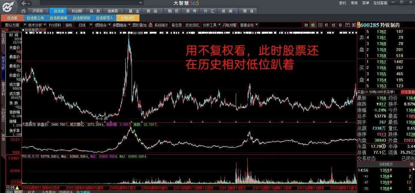 用不复权看,此时股票位置较低,还在历史相对低位趴着