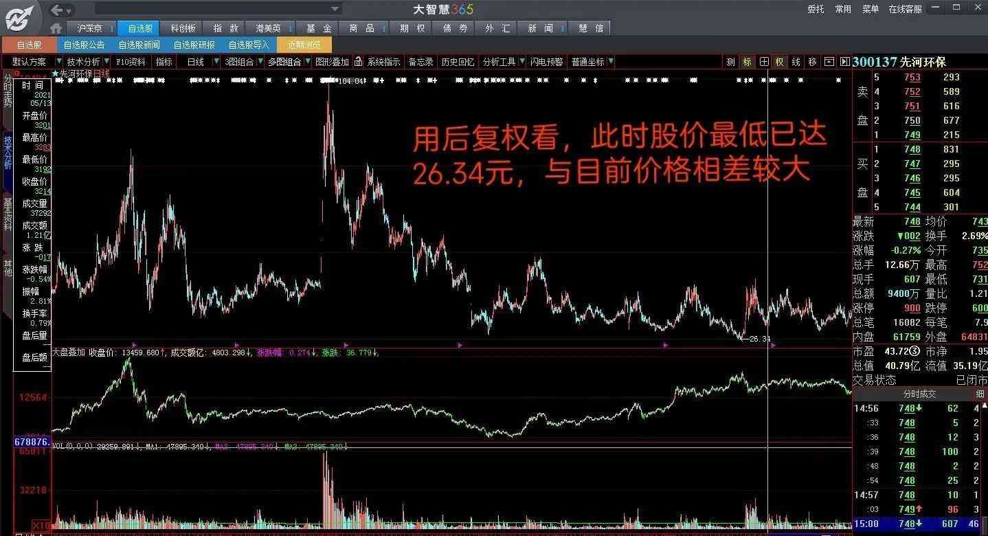 用后复权看,股价差别很大,历史最低价高达26.3,而目前真实股价才7.4,所以不能真实反应目前股价位置