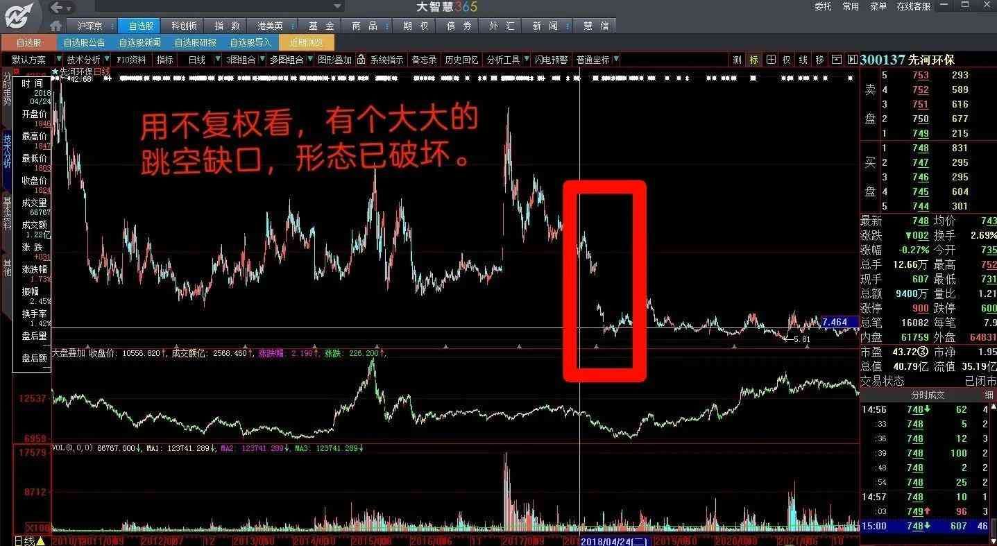 最终结论:分析股票最好要用前复权,才能不会被形态所骗,如果分析股票第一步错了,错把低位当高位,那么接下来的分析又有什么意义呢?