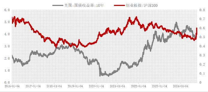 从海外来看,9月19日凌晨美联储9月议息会议宣告降息“靴子落地”,全球流动性宽松周期或将逐步打开。历史数据显示,美债收益率与科技成长风格走势呈现出一定的负相关关系。
