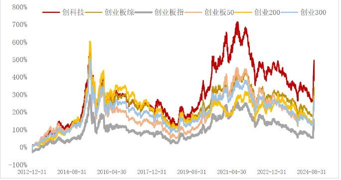 图:创业板相关指数区间收益率对比(2012/12/31-2024/10/30)