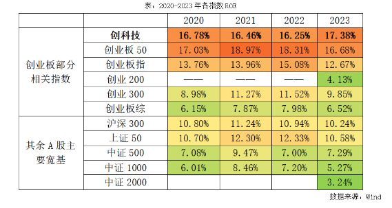 表:2020-2023年各指数ROE