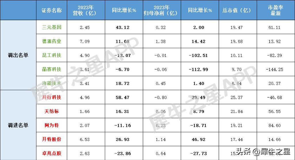 从这批调进调出公司的营收规模、成长性以及估值角度综合来看,新纳入公司在2023年的表现显然皆优于调出公司。