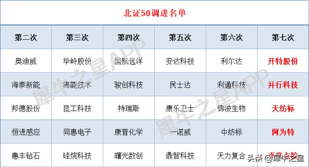 北证50指数成分股名单,北证50成分第七次调整这5家公司指数基金的被动配置