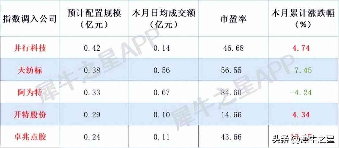 初步来看,5家获调入北证50指数的公司预计获得指数基金新配置规模约为1.66亿元,其中开特股份(832978)和并行科技(839493)都属于目前价格处于较底部位置的阶段,并且近期的日均成交额仍在1万上下浮动,远低于指数基金预计配置规模。