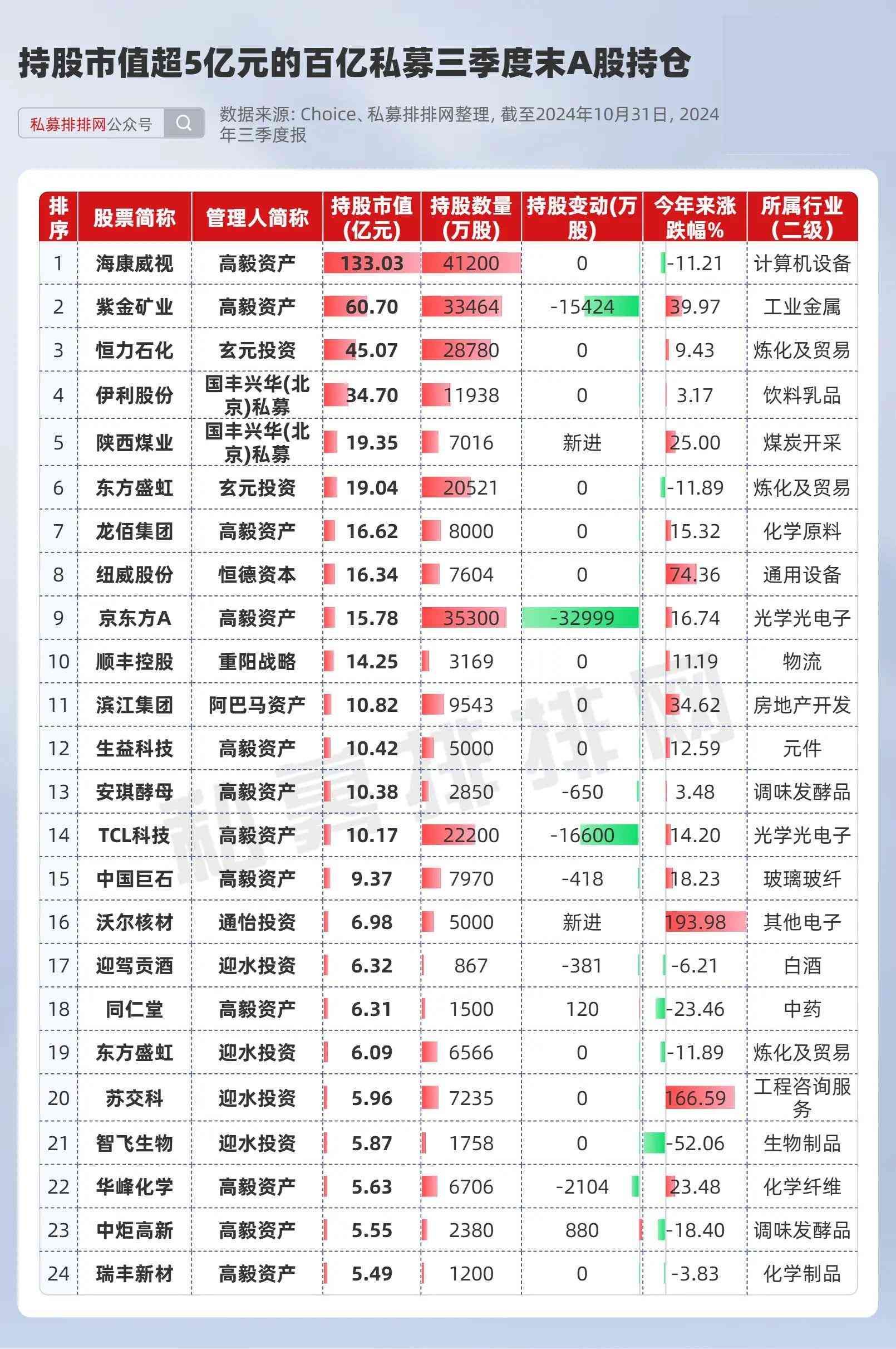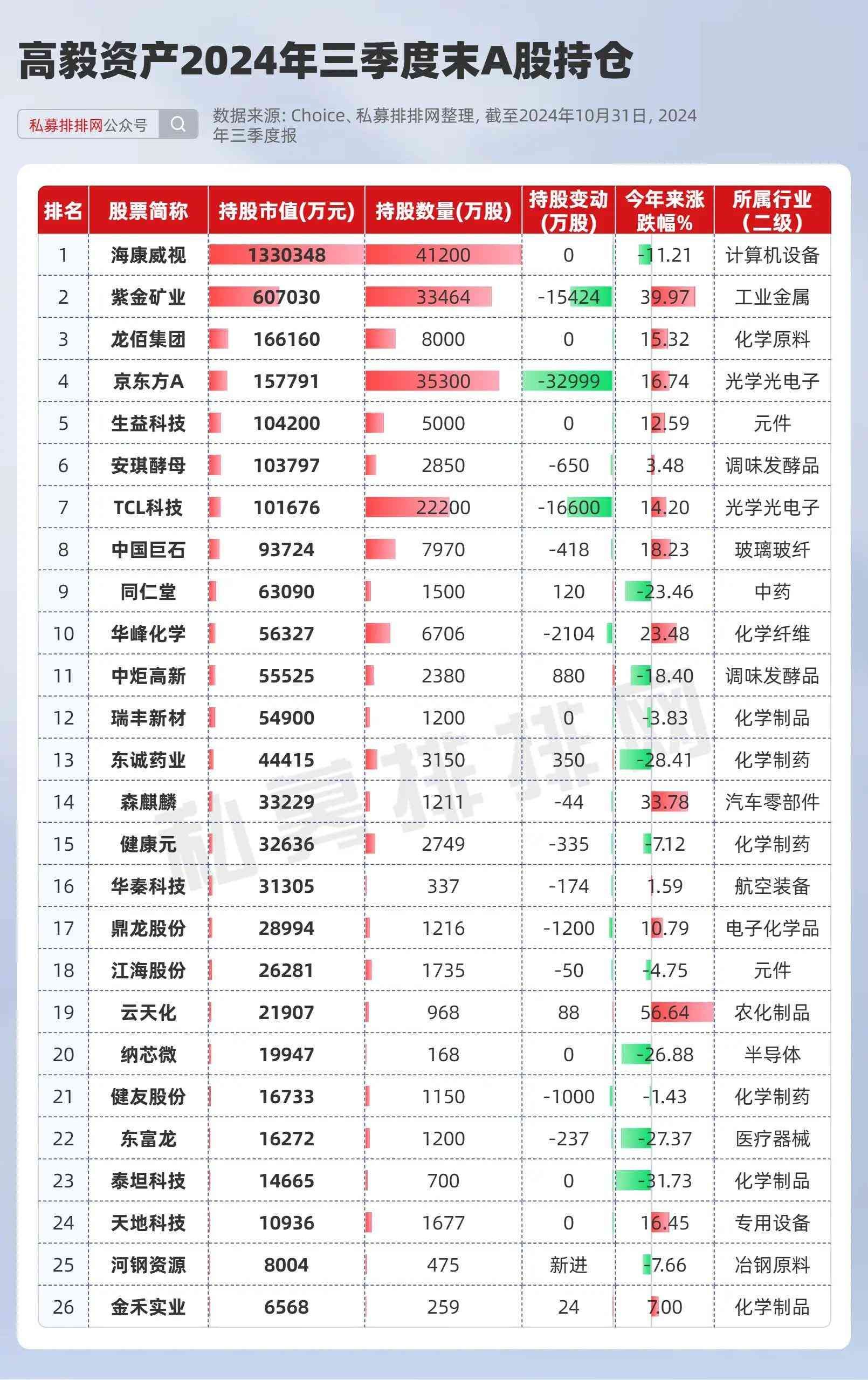 24只个股持股市值超5亿元!高毅资产大幅减持紫金矿业