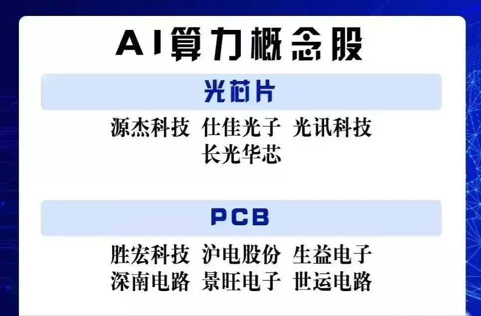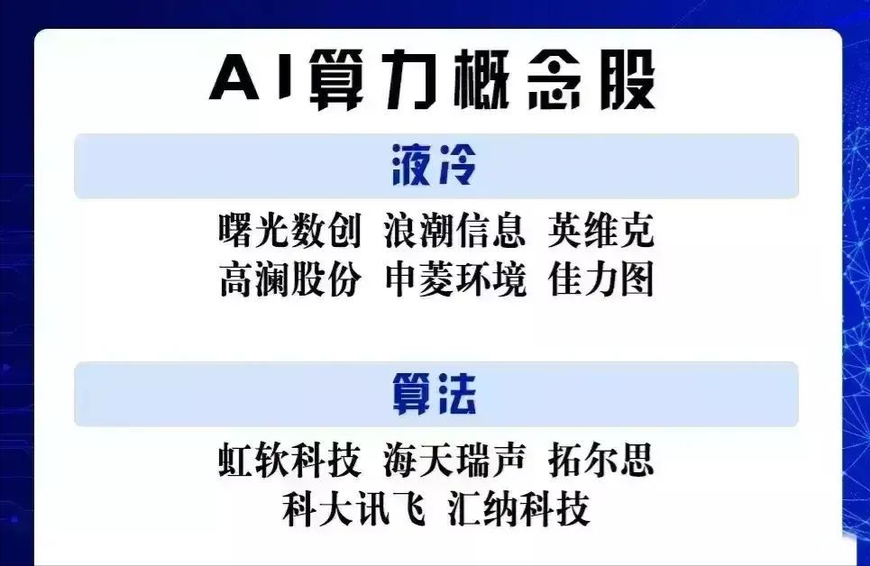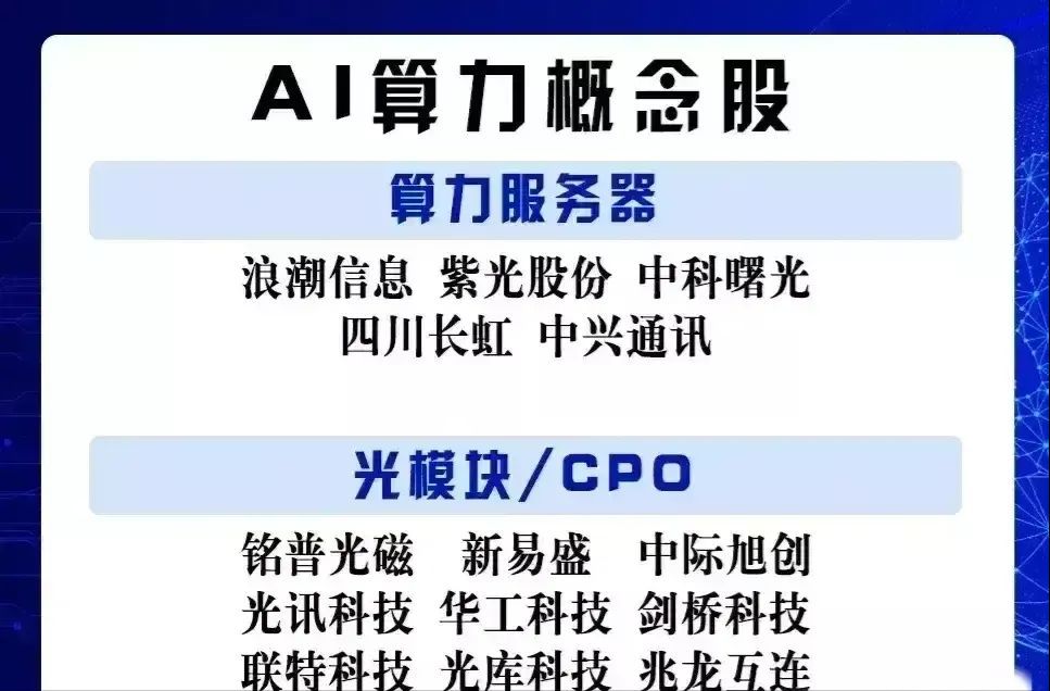 这些公司在AI算力领域的实力不容小觑,它们不仅是技术发展的先锋,也是投资的热点。但需要注意 的是,投资有风险,以上信息仅供参考,具体投资决策需要根据市场情况和个人风险承受能力进行判断。