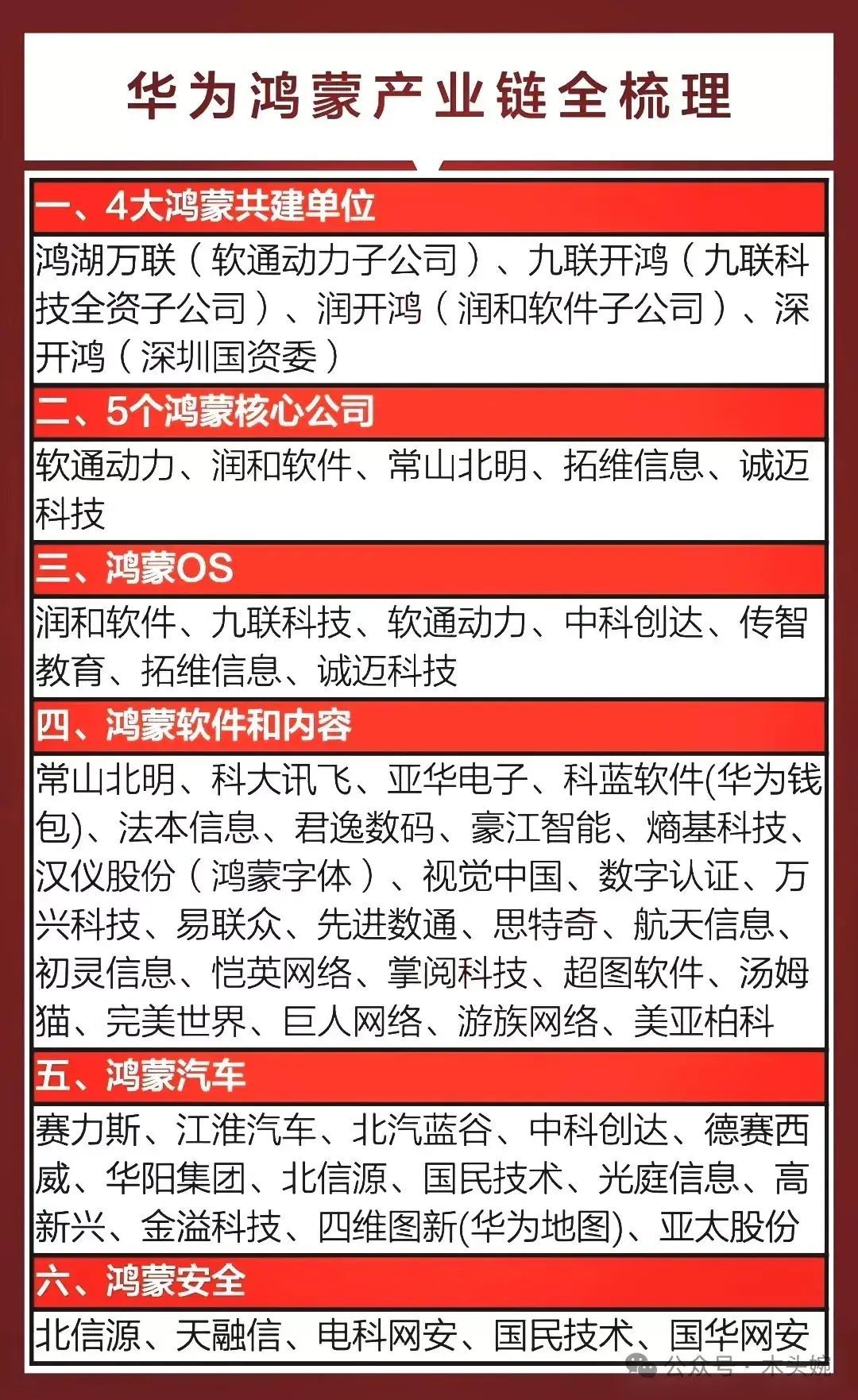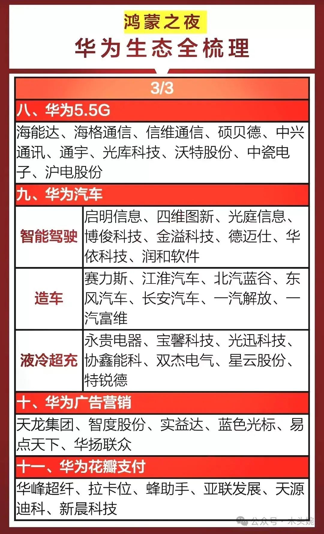 华为概念生态系统:鸿蒙+软件/汽车/安全/共建单位等等。