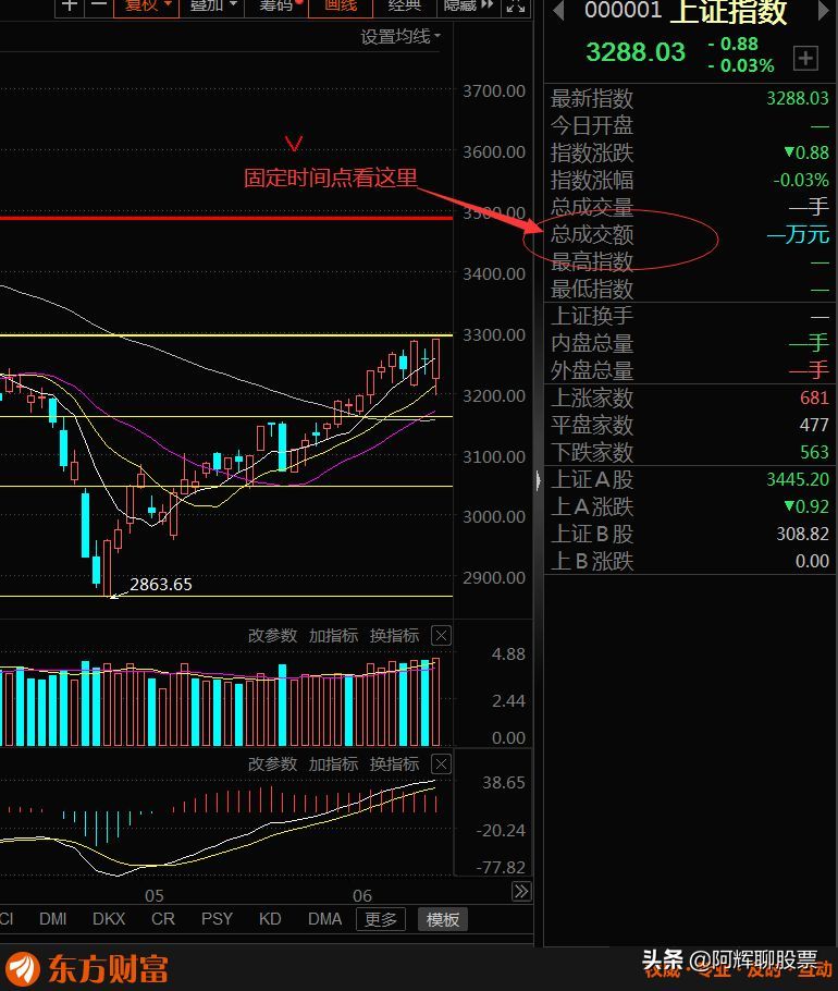 看盘区分大盘和个股,炒股的老鸟都懂得,量在价先的道理。说明成交量非常重要,先说大盘:大盘开盘20分钟每天都是成交量集中的时候,约20分钟后基本会是正常的成交量。我们取几个固定的时间点,每天记录大盘成交额,根据这个成交额的比较,提前就能预判大盘是放量还是缩量了,我每天记录10点 11 点 上午收盘 14点 下午收盘 这几个时间点的大盘成交额。比如前两天10点上证都是14亿左右的成交额,今天到了16亿,那今天大盘肯定是放量的一天。当然大部分时间是准确的,股市是没有绝对的概念,也有下午盘突然放量的时候,不过相对很少。上图说明: