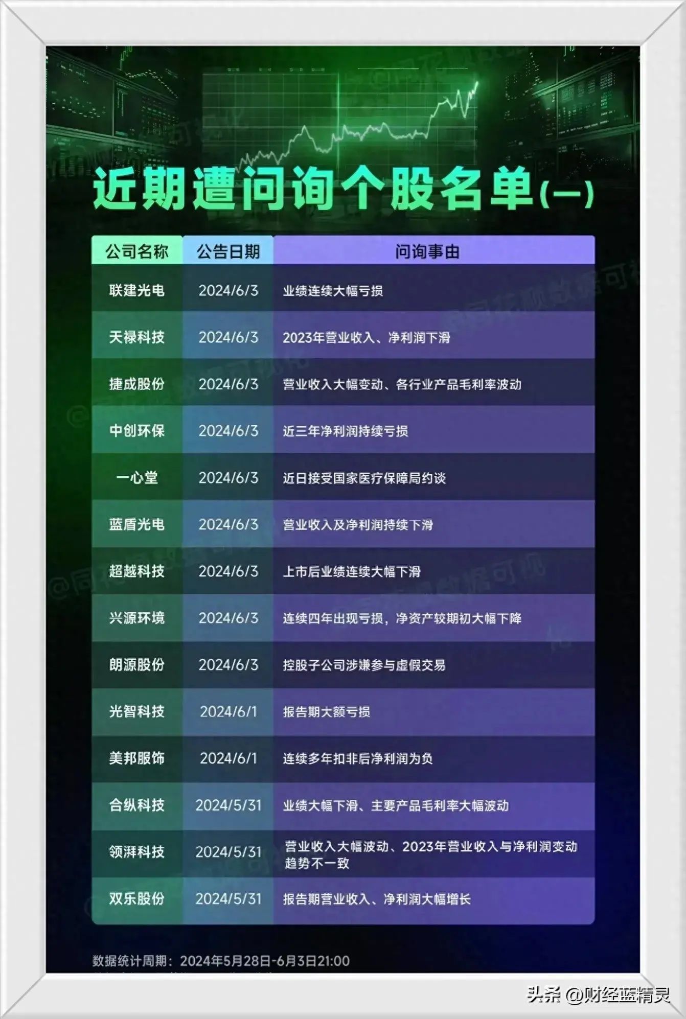 从上个周开始我发现了一周基本上都有十来家公司被公布出监管层给它们发布问询函。
