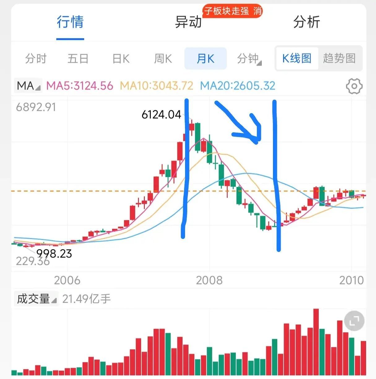 依旧看上证指数月线,在此周期内,股市上涨120点,最大从1368点涨到2245点,约为1.64倍。在那时,人民币汇率三年稳定在8.27,人民币利率下降18bp,三年GDP年平均增长9.17%