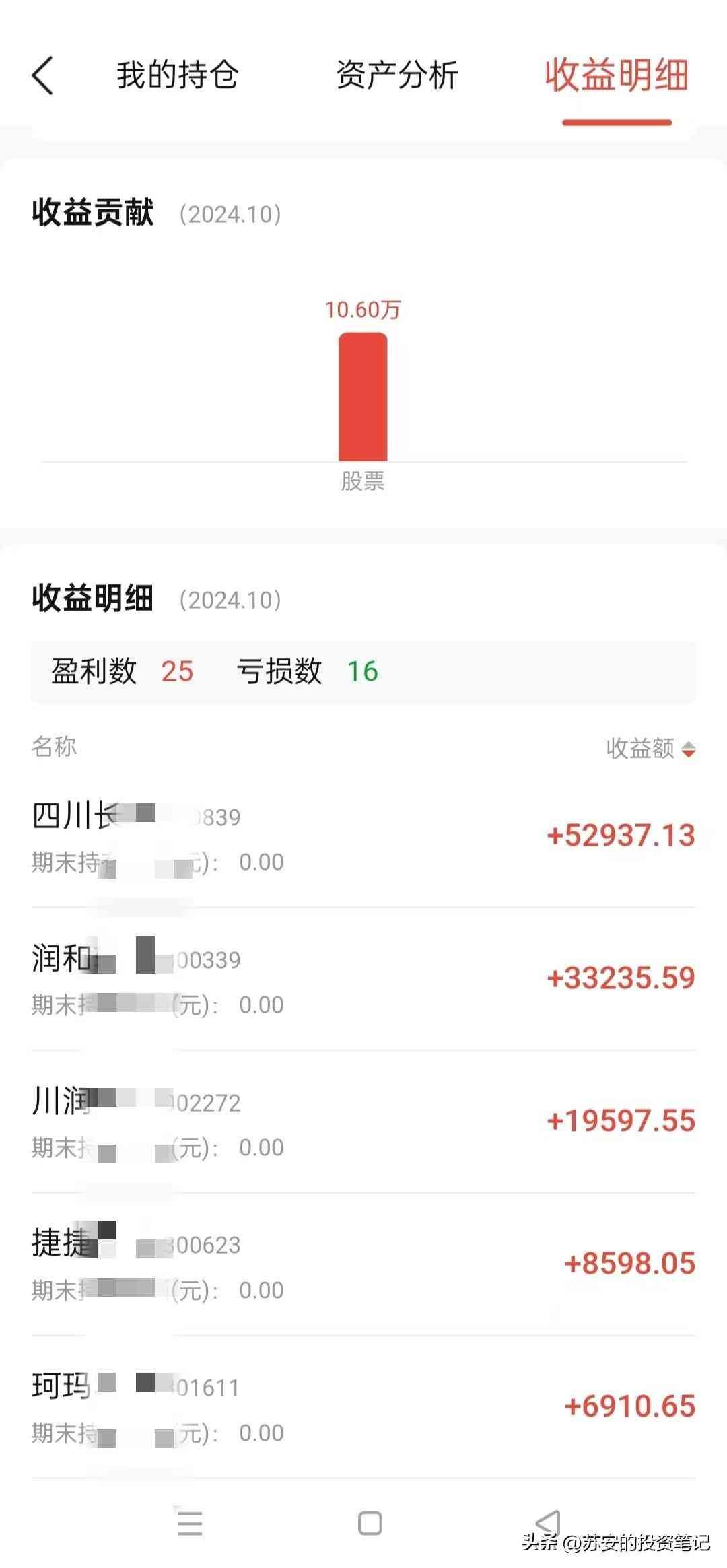 部分盈利个股(润和是总计盈利10w+,9月份盈利7W)