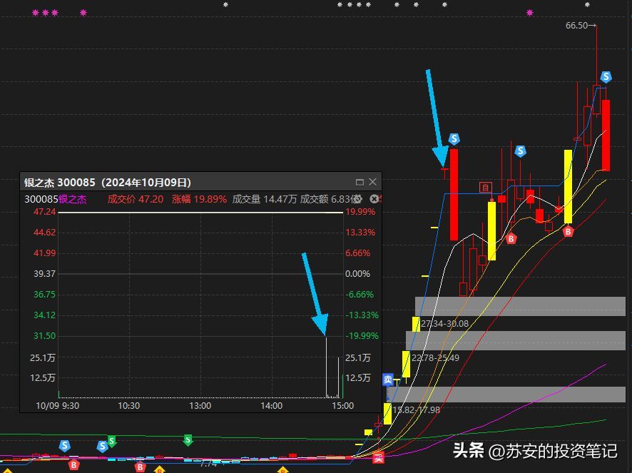 10月9日银之杰尾盘漏单,次日小幅高开诱多,直接瀑布杀。
